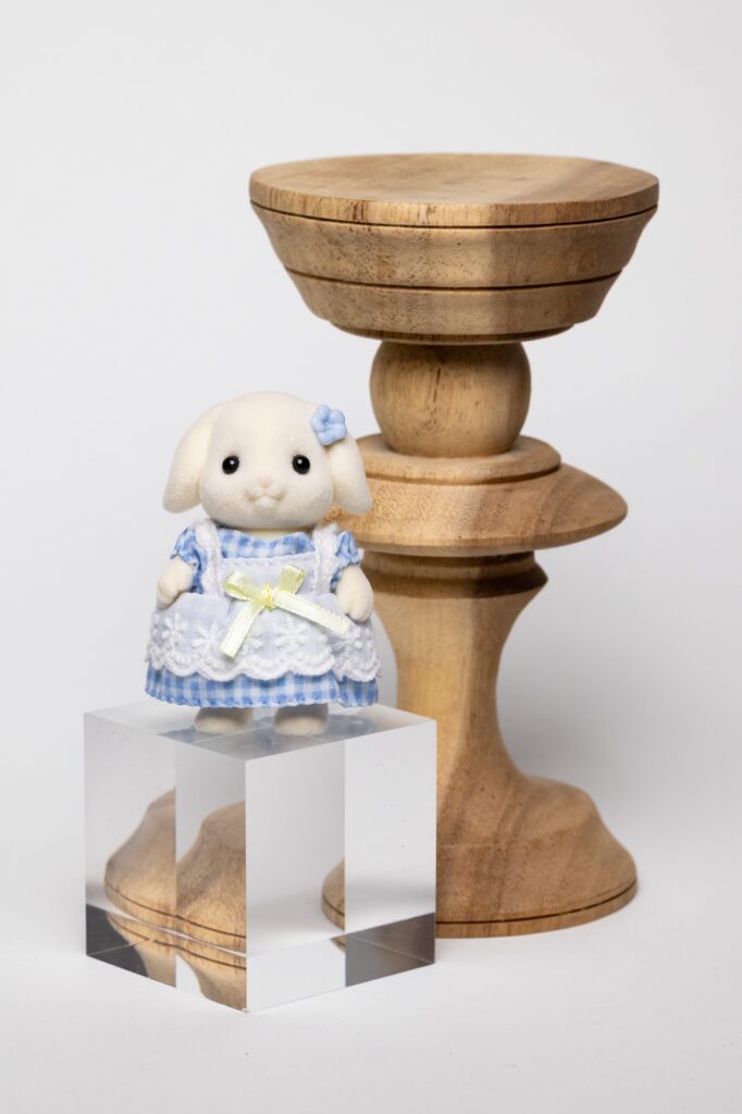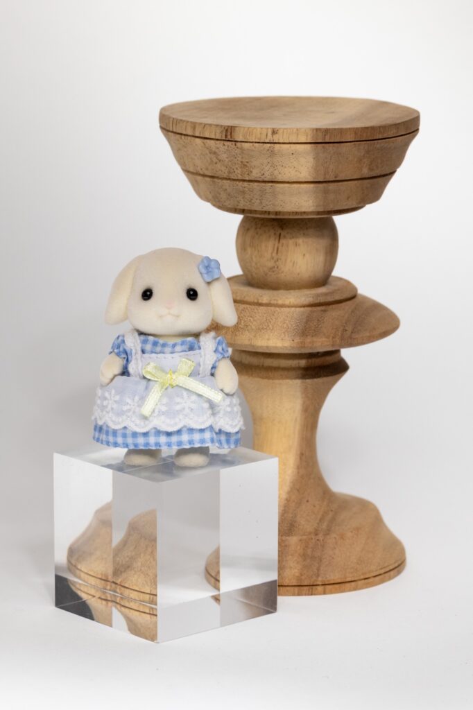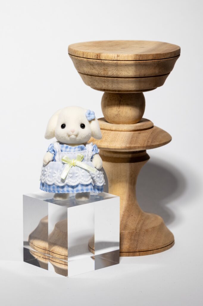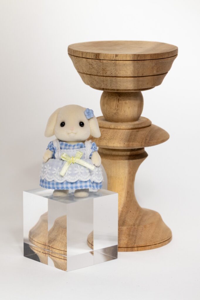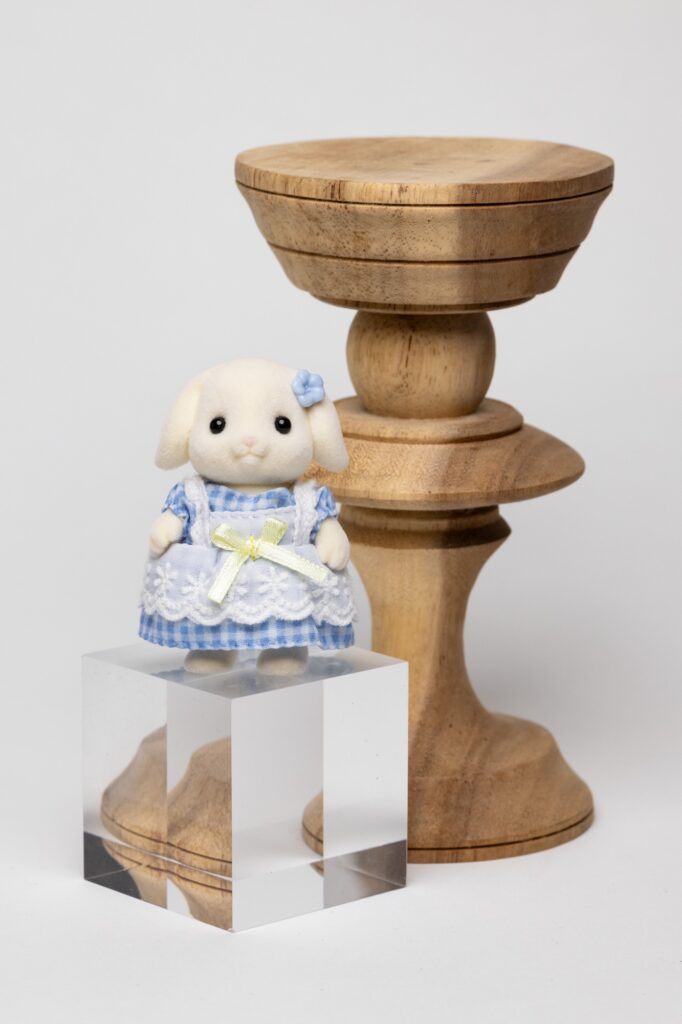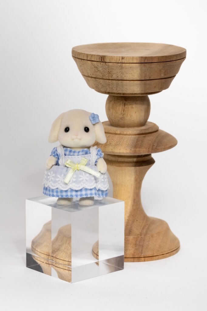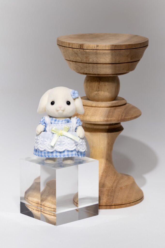 うさぎさんの頭を見ると分かりやすいのですが、グリッドを付けると被写体の縁に影が出てきて、メインディフューザーのみよりもさらに立体感が出てきます。商品を際立たせたい時にぴったりだと思います。